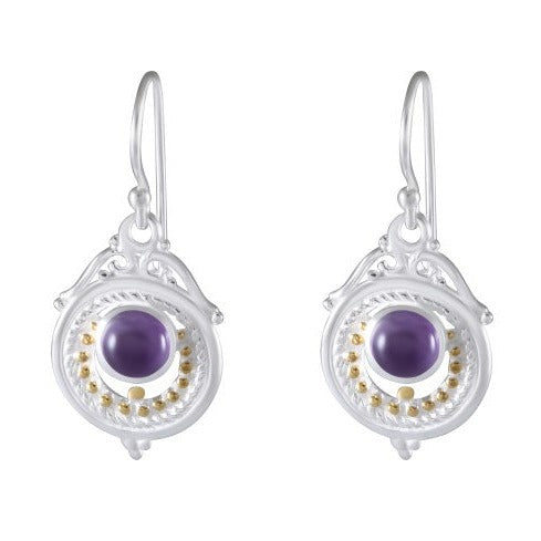 The earrings presented in the image showcase a graceful and intricate design, featuring a central gemstone surrounded by delicate filigree and ornate details. This design exudes a sense of timeless elegance and sophistication, making it a perfect choice for those special occasions where you want to make a statement with your jewelry.